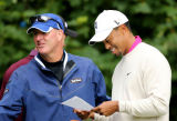 图文-英国高尔夫球公开赛首轮 伍兹看看资料